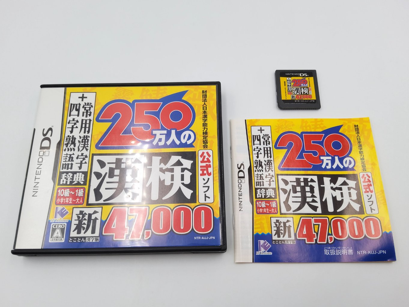 250 Mannin No Kanken De Tokoton Kanji Nou est un logiciel éducatif sorti uniquement au Japon sur Nintendo DS en 2009. Le jeu teste les connaissances du joueur sur la lecture et l’écriture des Kanji, les phrases étant assez simples, il est parfait pour un étudiant en japonais qui désire s’améliorer sur l’écriture des idéogrammes.