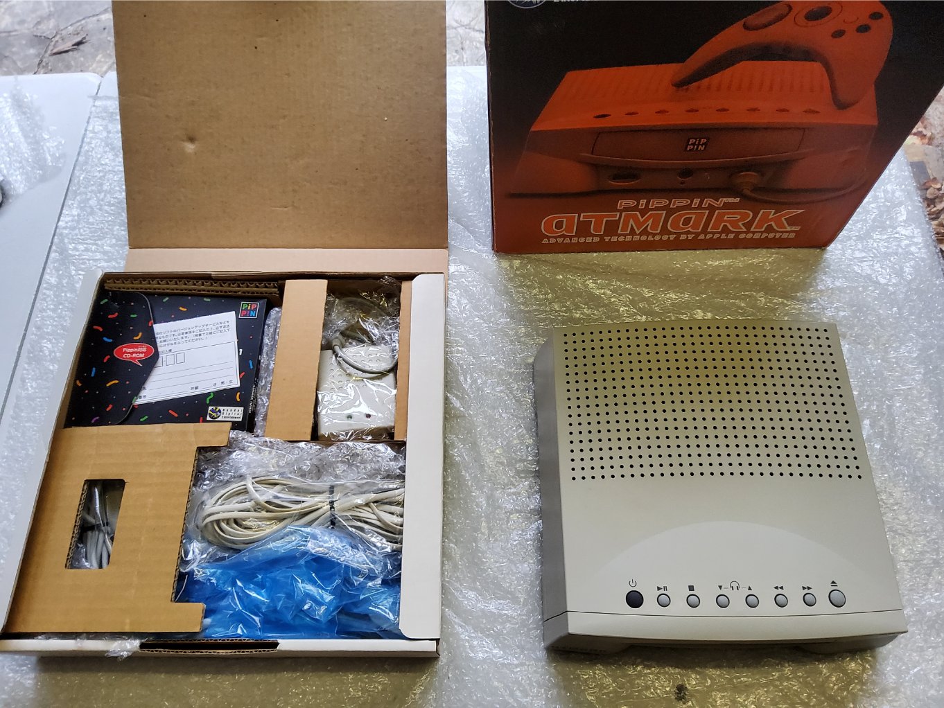La Pipp!n est la seule console de jeux vidéo conçue par Apple, commercialisée en 1996 par Bandai jusqu’à mars 1997 qui n’en vendit que 42000 exemplaires dans le monde, rendant ainsi la console rare à trouver.