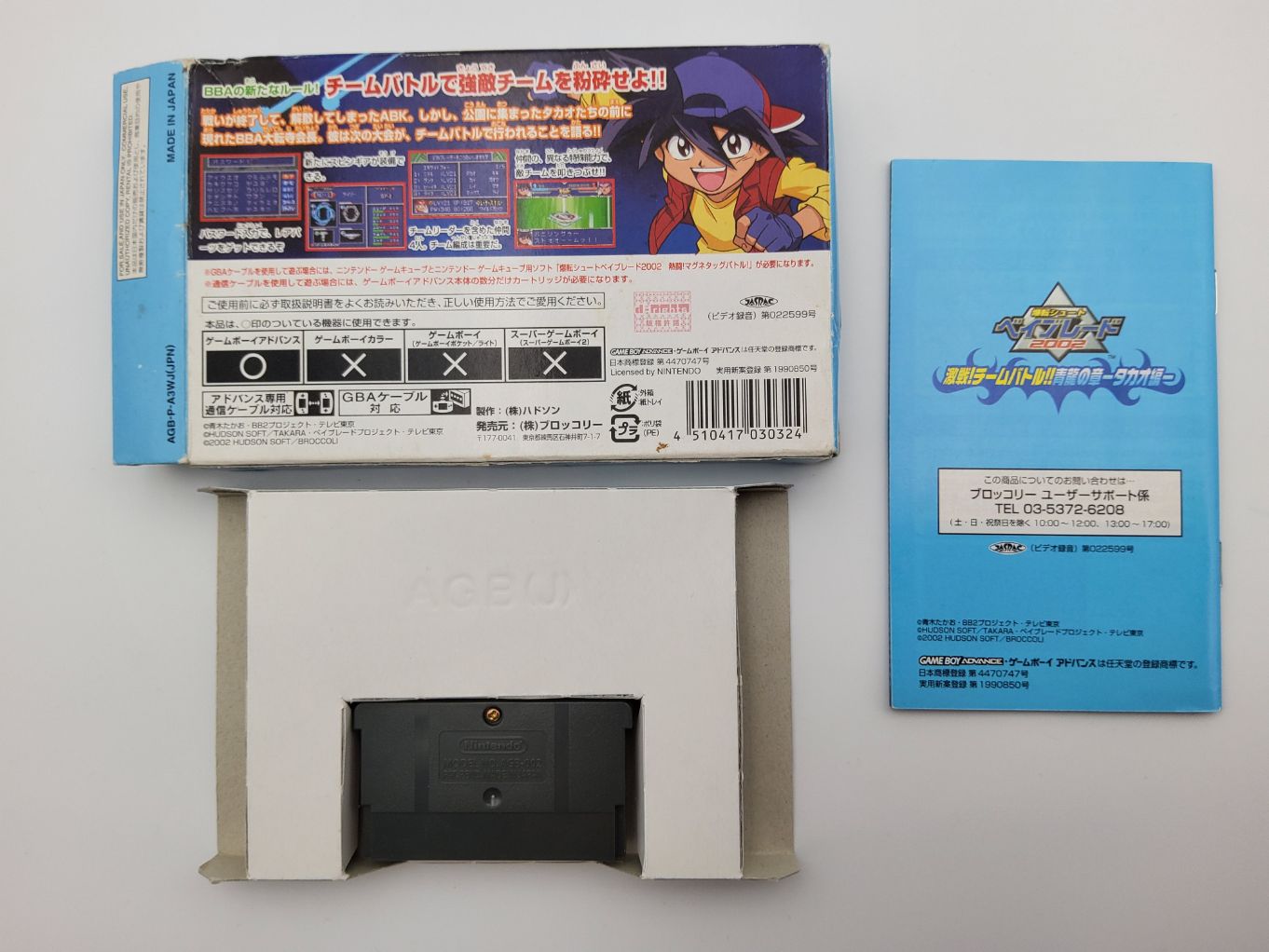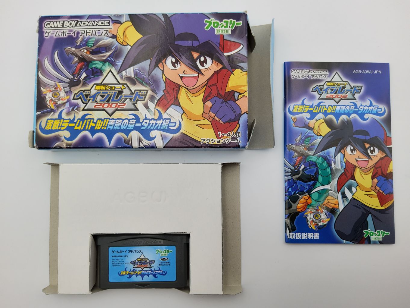 Connu sous Bakuten Shoot Beyblade 2002 Team Battle! Takao Version, il s’agit d’un jeu vidéo de rôle/ stratégie sorti uniquement au Japon sur Game Boy Advance.