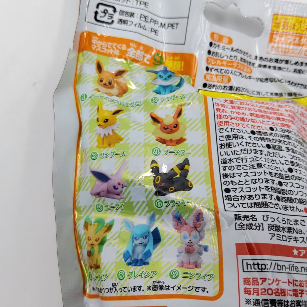 Sels de bain parfumés à la camomille contenant une figurine Pokemon aléatoire de la famille d’Evoli: