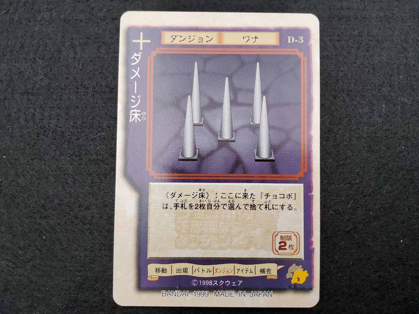 Carte du trading card game « Chocobo’s Gamecard », jeu publié par Bandai uniquement au Japon en 1999 lors de la sortie du jeu video Chocobo’ss Dungeon 2 de Squaresoft.