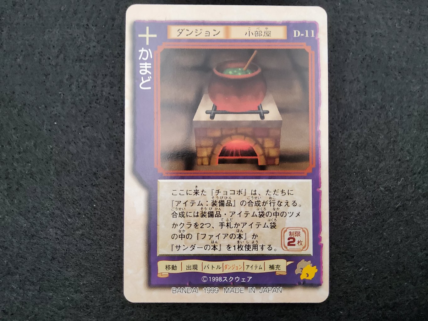 Carte du trading card game « Chocobo’s Gamecard », jeu publié par Bandai uniquement au Japon en 1999 lors de la sortie du jeu video Chocobo’ss Dungeon 2 de Squaresoft.