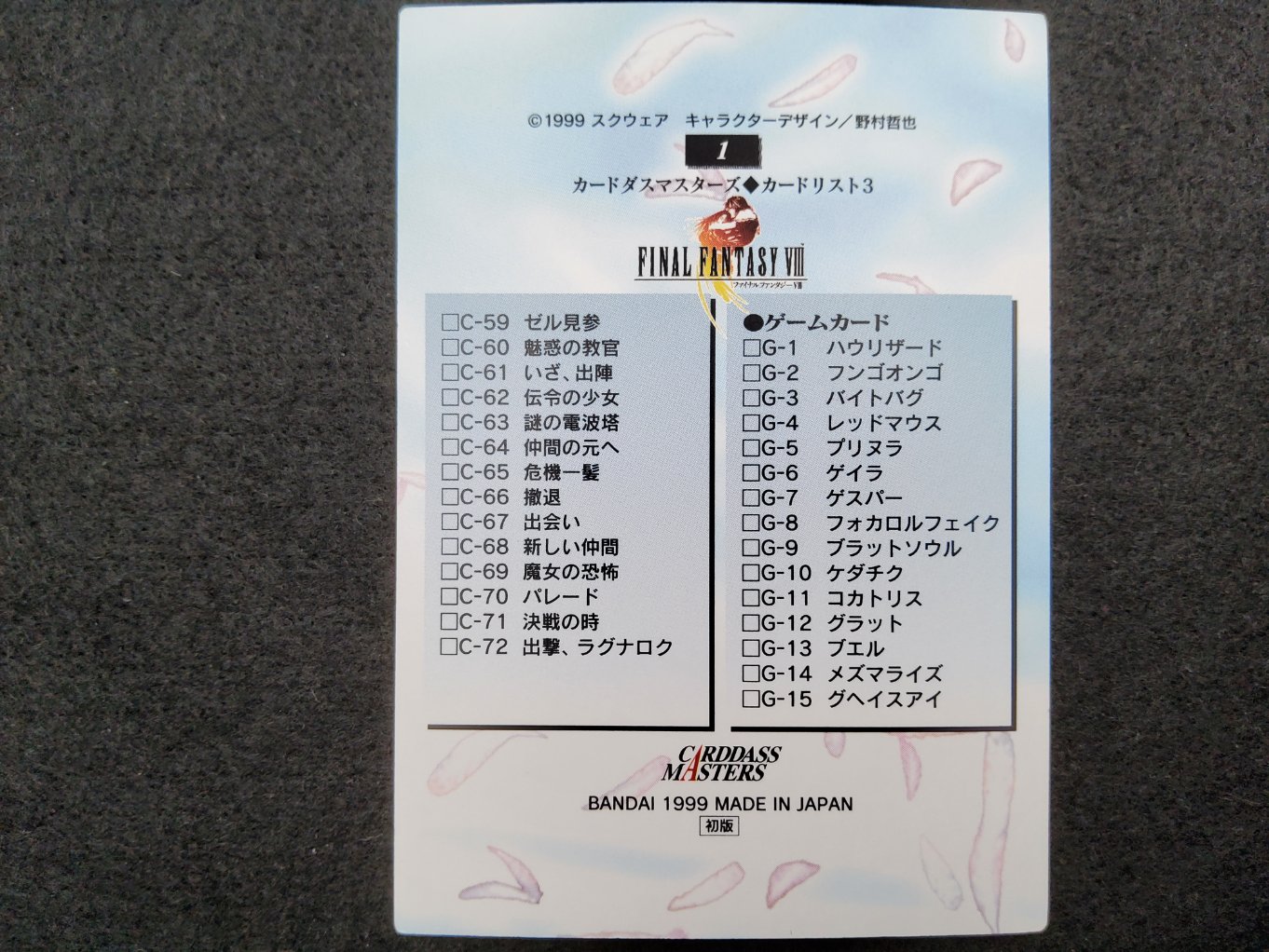 Collection de 72 cartes qui est la première partie de Final Fantasy VIII Carddass Masters, la seconde partie étant les 110 cartes Triple Triad.