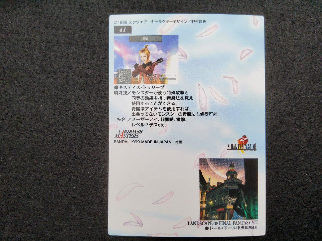 Collection de 72 cartes qui est la première partie de Final Fantasy VIII Carddass Masters, la seconde partie étant les 110 cartes Triple Triad.