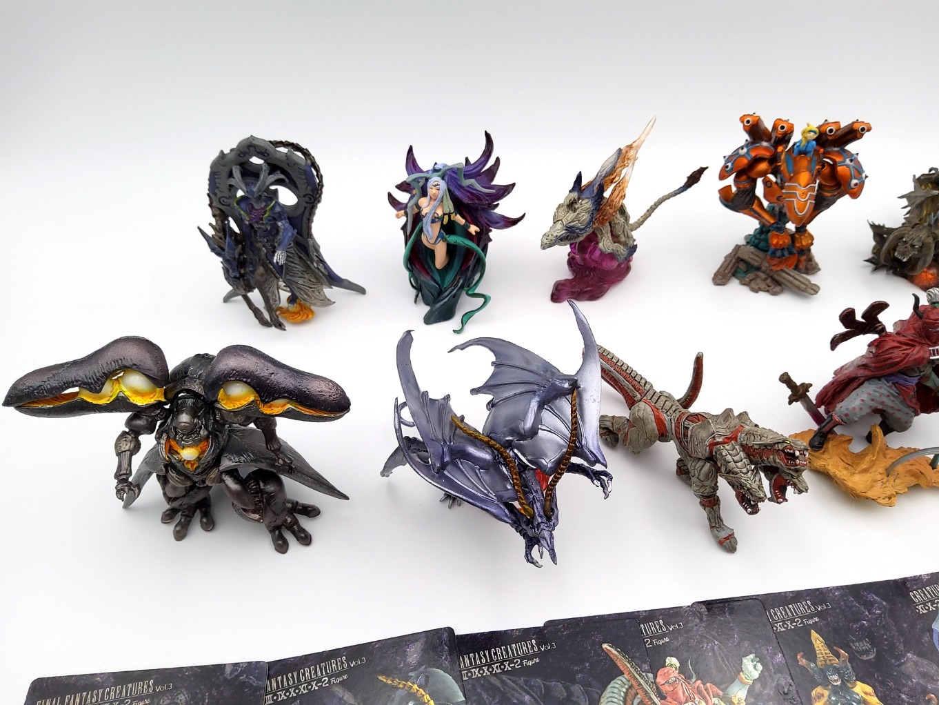 Figurines de différents monstres et invocations de FF 7, 8, 9, 10 et 11