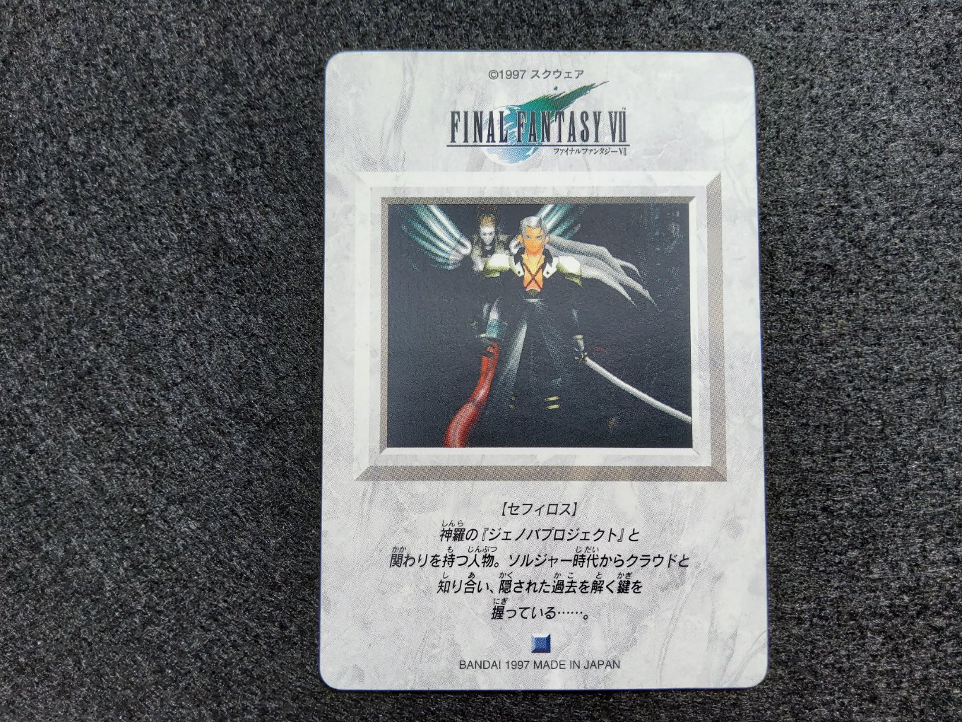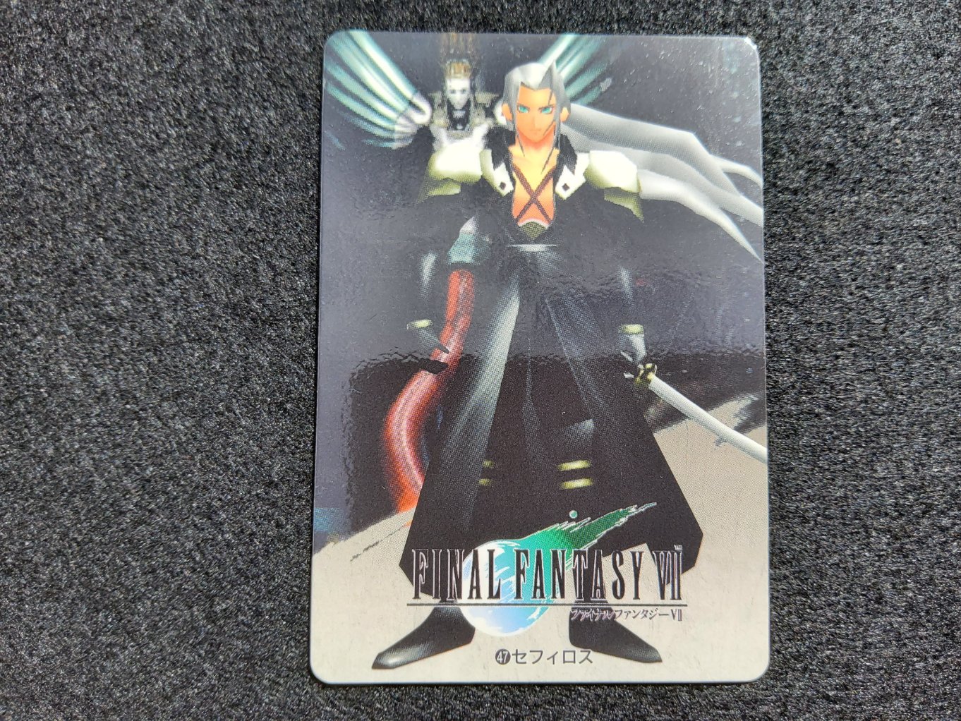 Carte à collectionner de Sephiroth provenant de la collection Final Fantasy VII Carddass sortie uniquement au Japon en 1997.