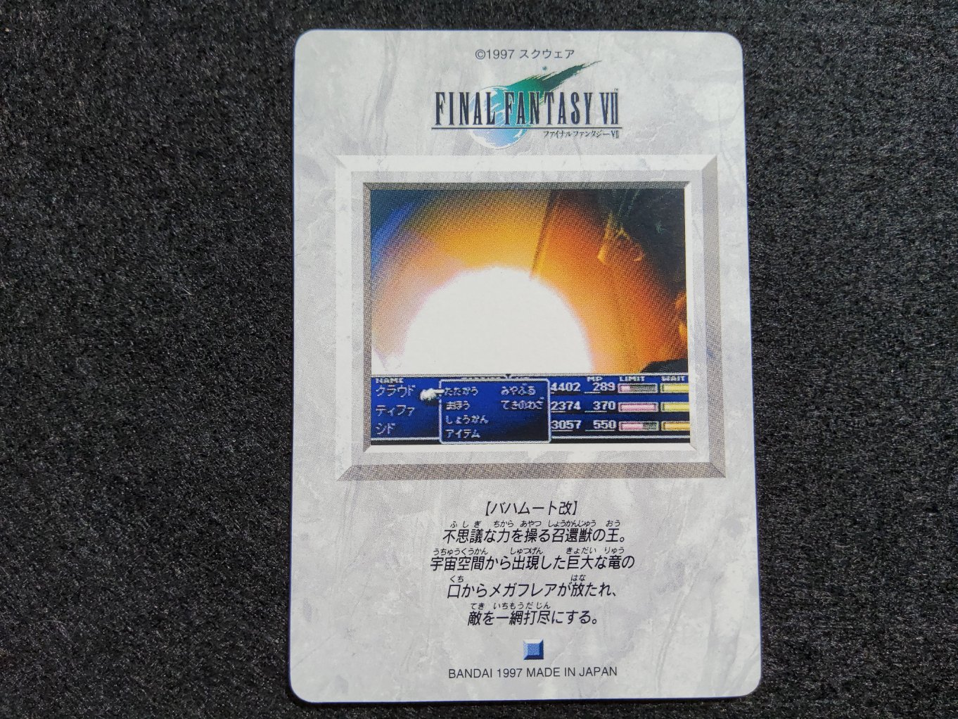 Carte à collectionner de Bahamut provenant de la collection Final Fantasy VII Carddass sortie uniquement au Japon en 1997.