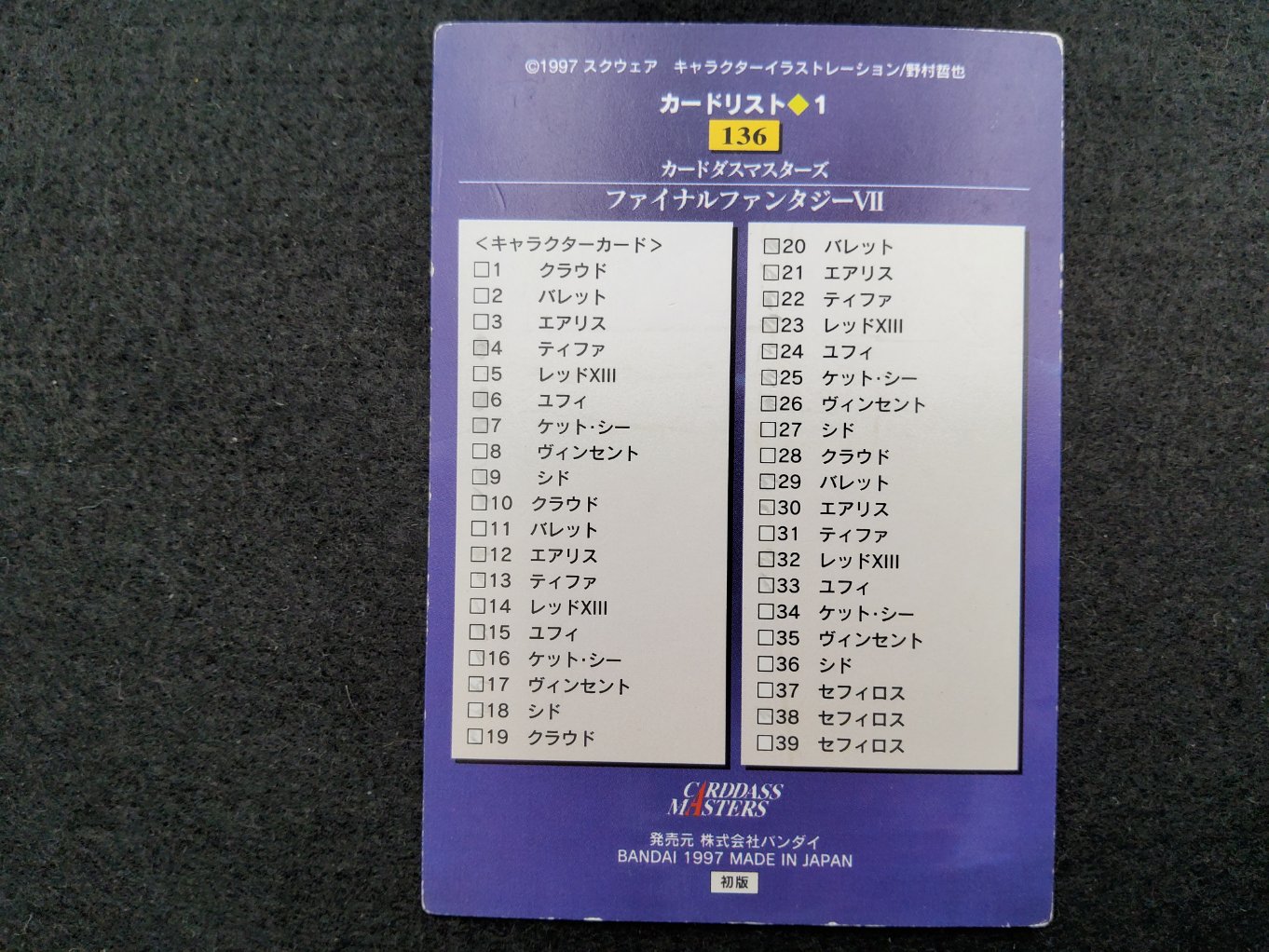 Carte à collectionner de Cloud provenant de la collection Final Fantasy 7 Carddass sortie uniquement au Japon en 1997.