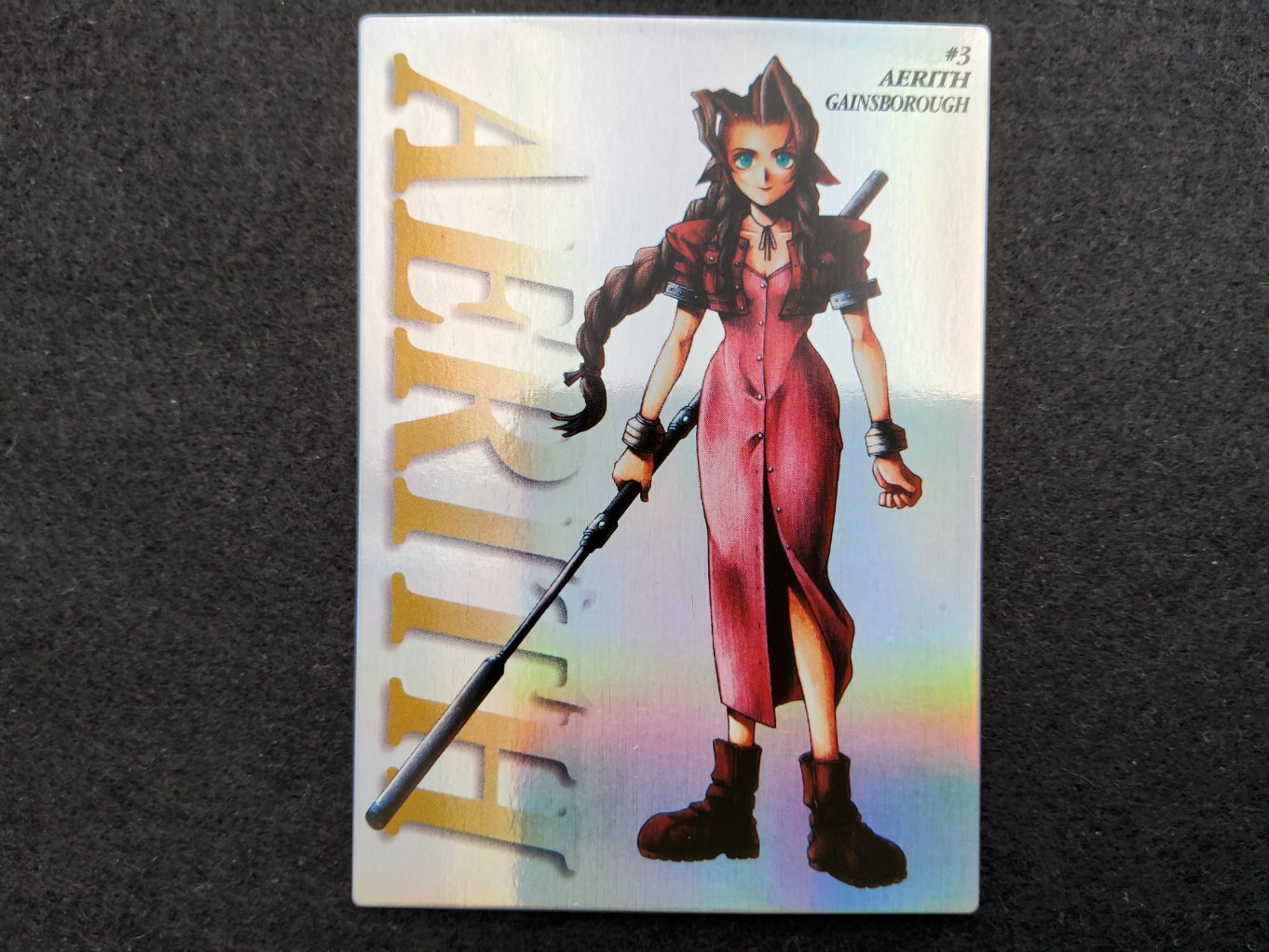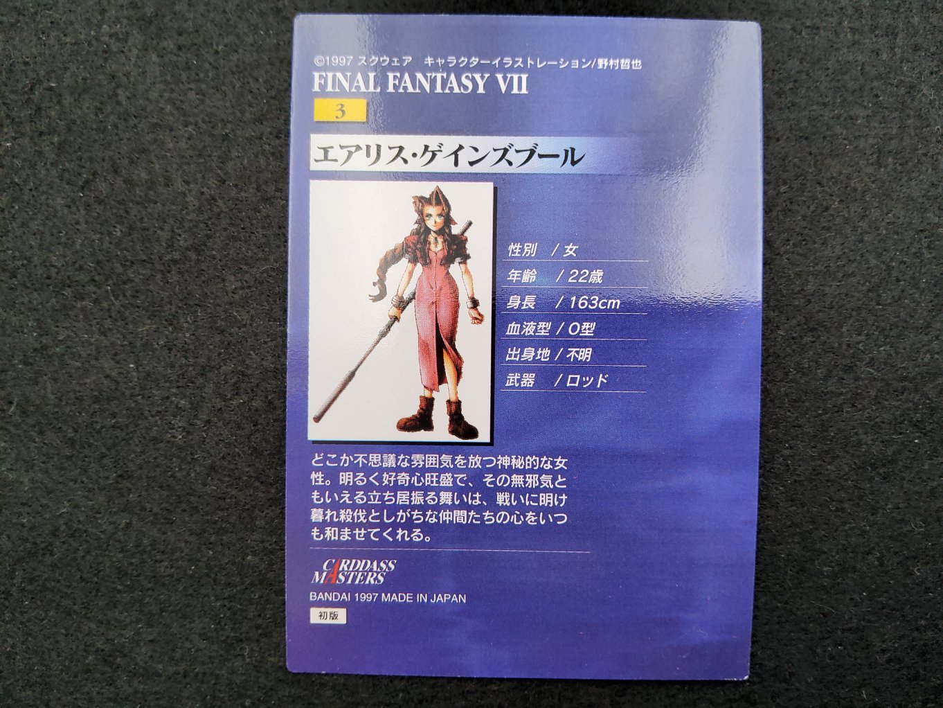 Carte à collectionner d’Aeris Holo provenant de la collection Final Fantasy 7 Carddass sortie uniquement au Japon en 1997.