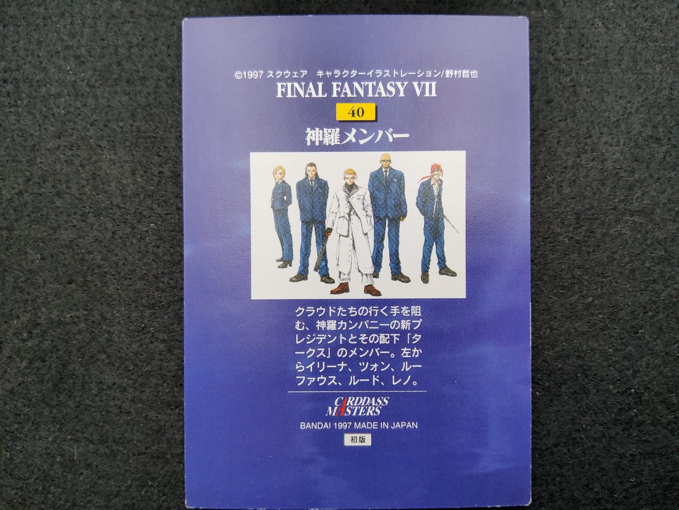 Carte à collectionner de Rufus et les Turks provenant de la collection Final Fantasy 7 Carddass sortie uniquement au Japon en 1997.