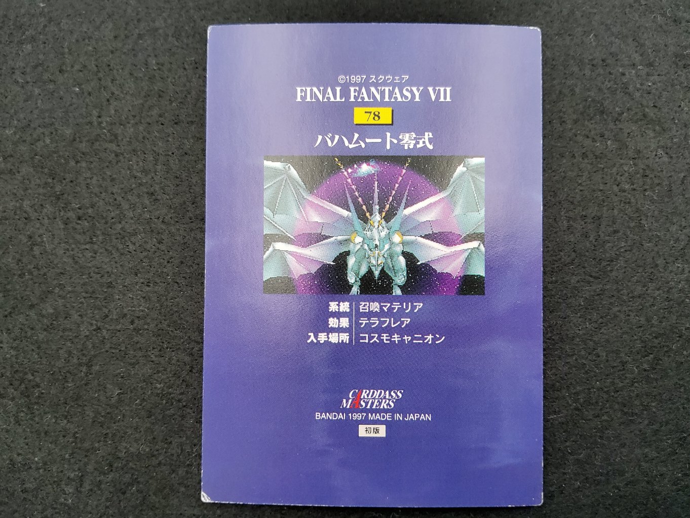 Carte à collectionner de Bahamut Zero provenant de la collection Final Fantasy 7 Carddass sortie uniquement au Japon en 1997.