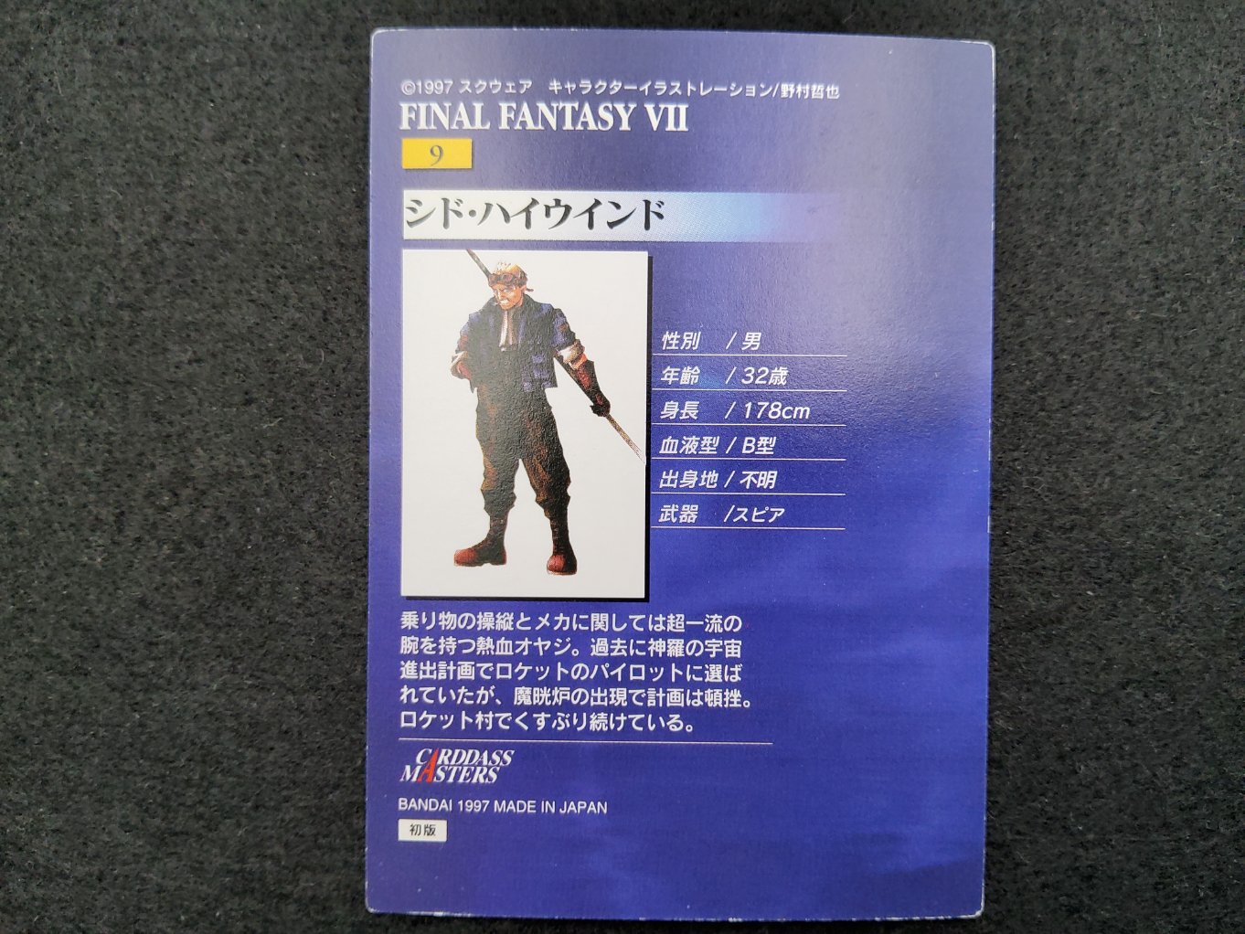 Carte à collectionner de Cid provenant de la collection Final Fantasy 7 Carddass sortie uniquement au Japon en 1997.