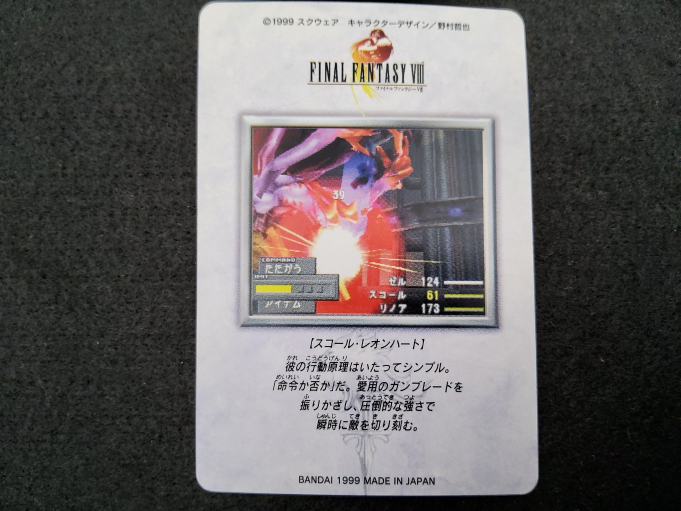 Carte de Squall de la collection Final Fantasy VIII Bandai Carddass sortie uniquement au Japon en 1999.