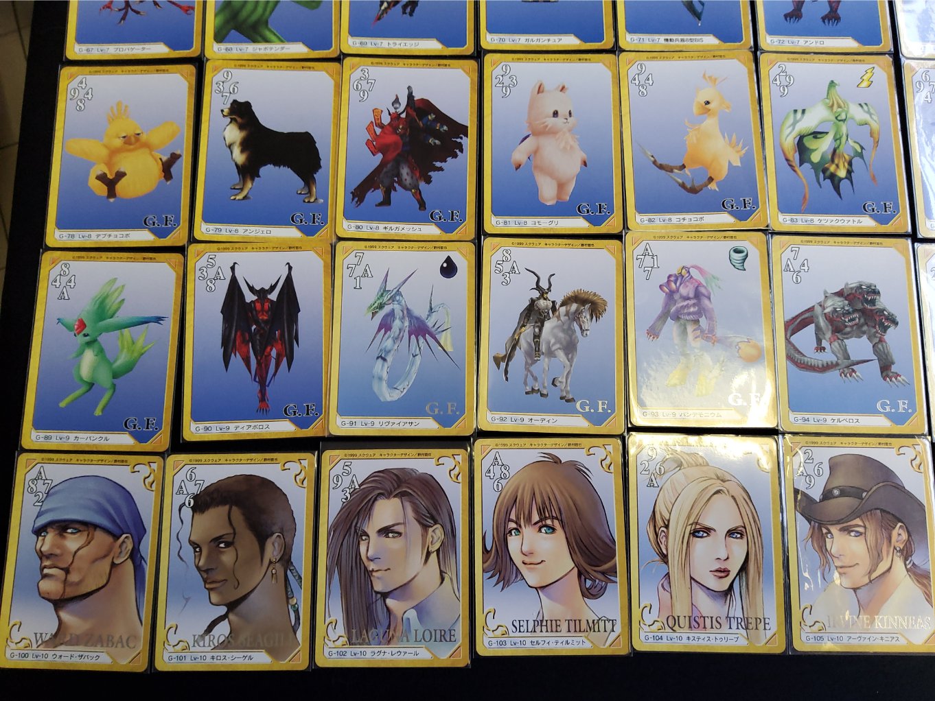 Collection de cares Final Fantasy VIII Carddass Masters Triple Triad complète, sortie uniquement au Japon en 1999.