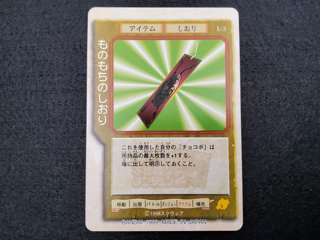 Carte du trading card game « Chocobo’s Gamecard », jeu publié par Bandai uniquement au Japon en 1999 lors de la sortie du jeu video Chocobo’ss Dungeon 2 de Squaresoft.