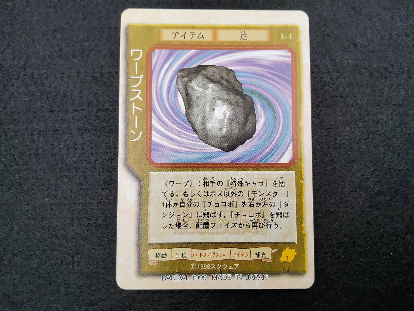 Carte du trading card game « Chocobo’s Gamecard », jeu publié par Bandai uniquement au Japon en 1999 lors de la sortie du jeu video Chocobo’ss Dungeon 2 de Squaresoft.