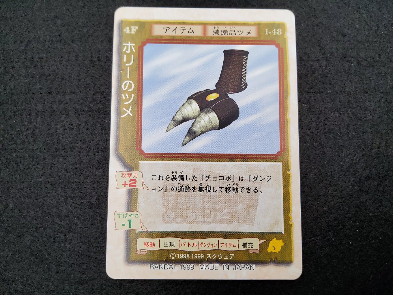 Carte du trading card game « Chocobo’s Gamecard », jeu publié par Bandai uniquement au Japon en 1999 lors de la sortie du jeu video Chocobo’ss Dungeon 2 de Squaresoft.