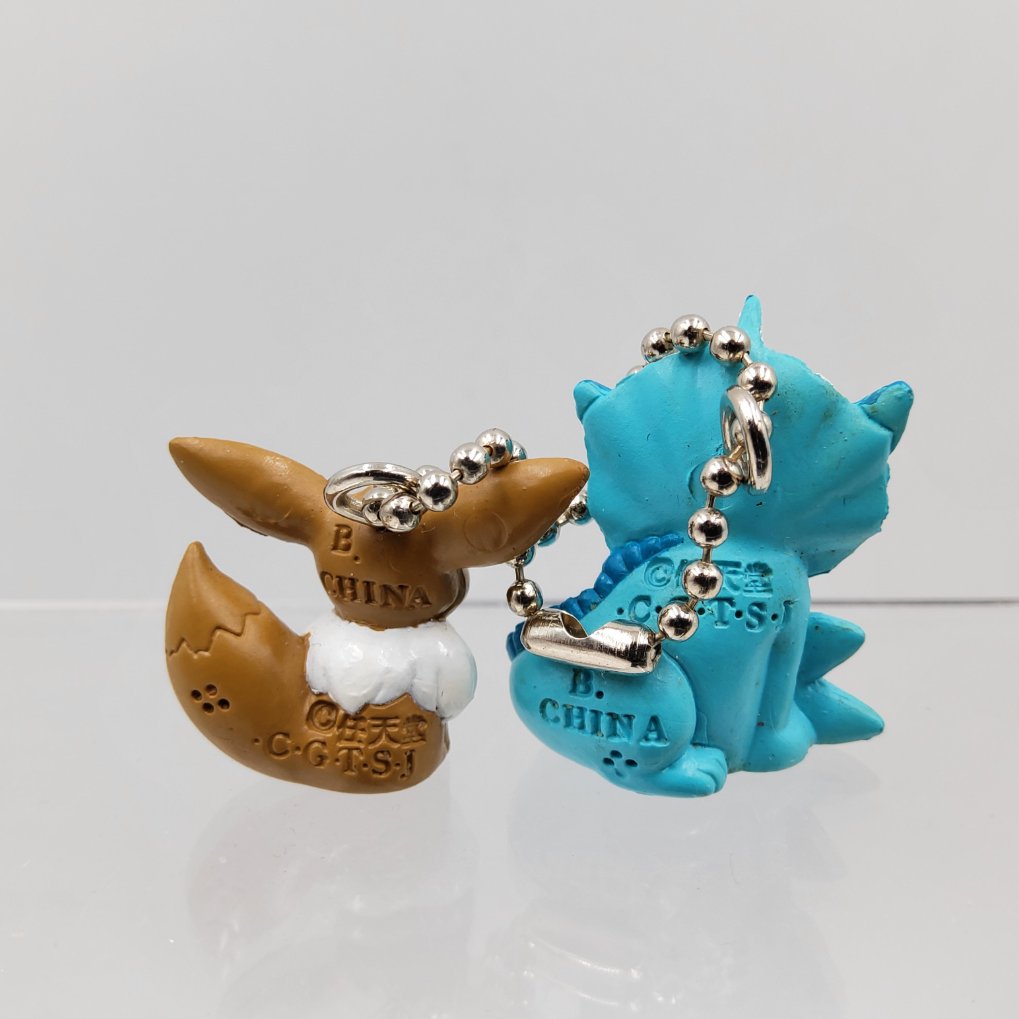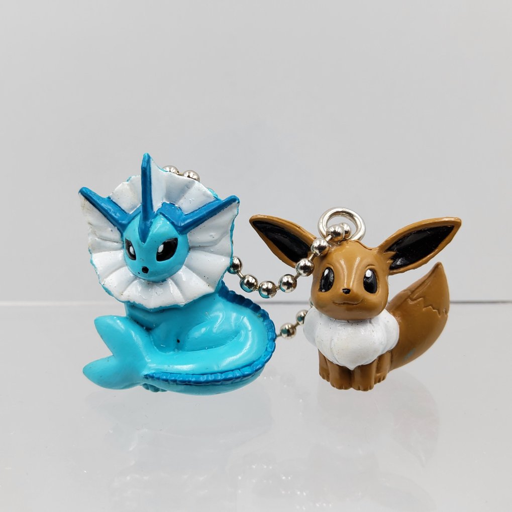 Figurines officielles d’Evoli et Aquali avec une chaîne en porte-clé, appartenant à la collection Pokemon Swing.