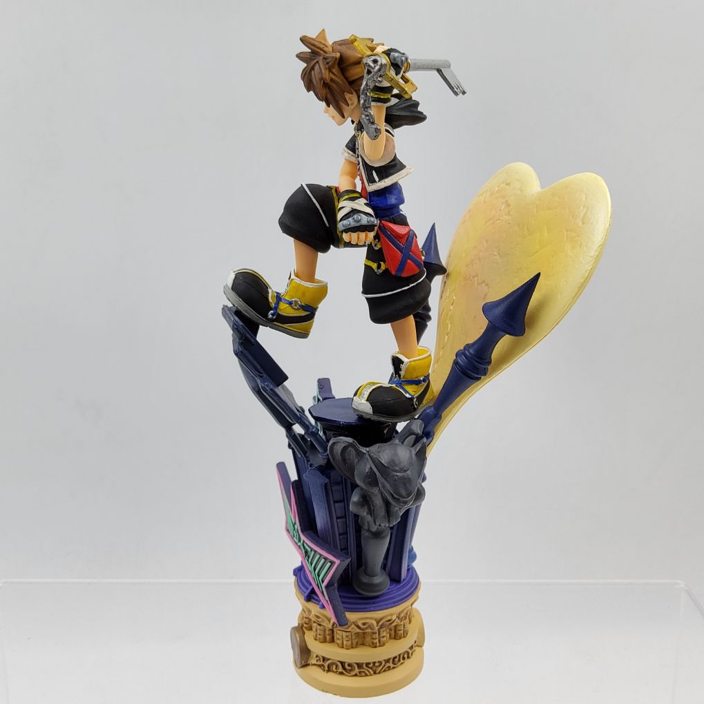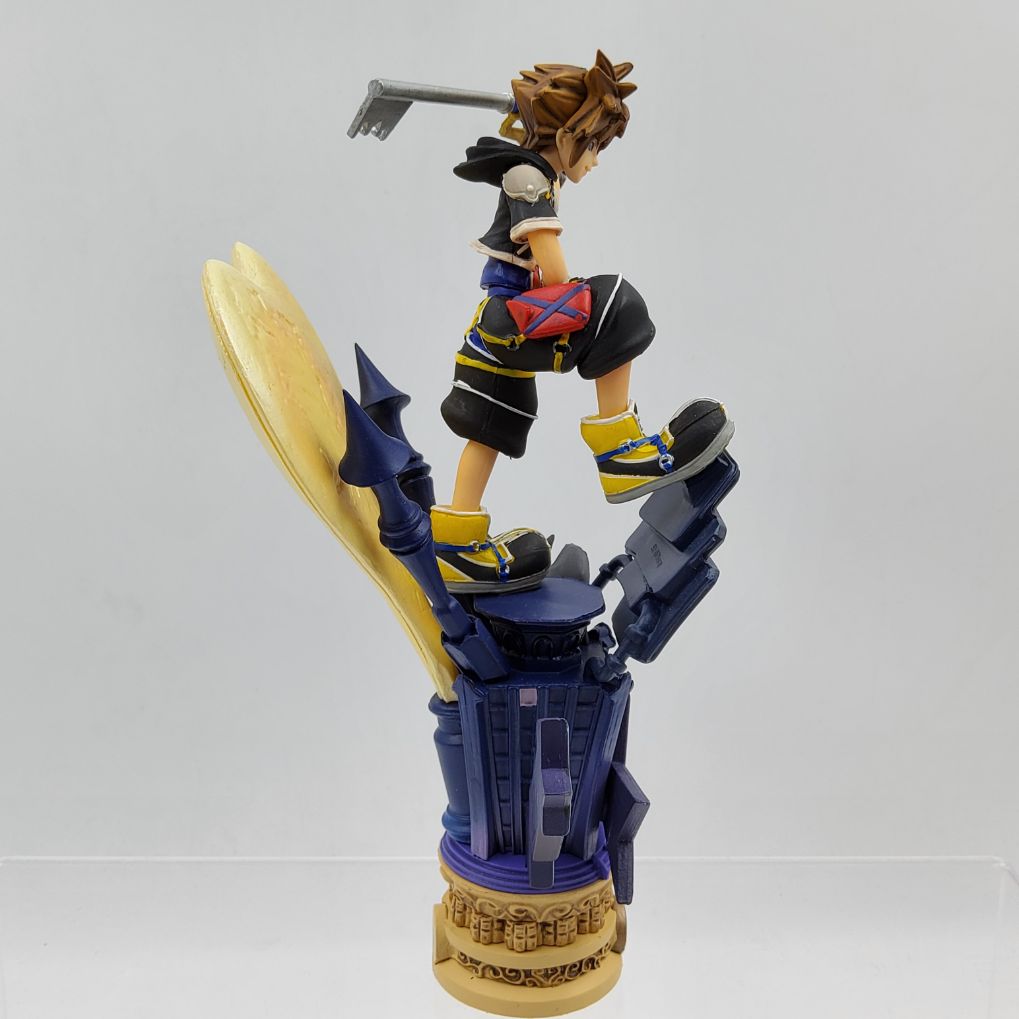 Figurine de Sora du jeu vidéo KH I mélangeant des personnages de Disney et de la licence Final Fantasy.