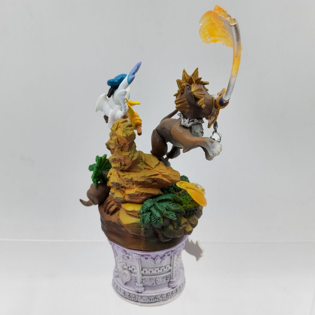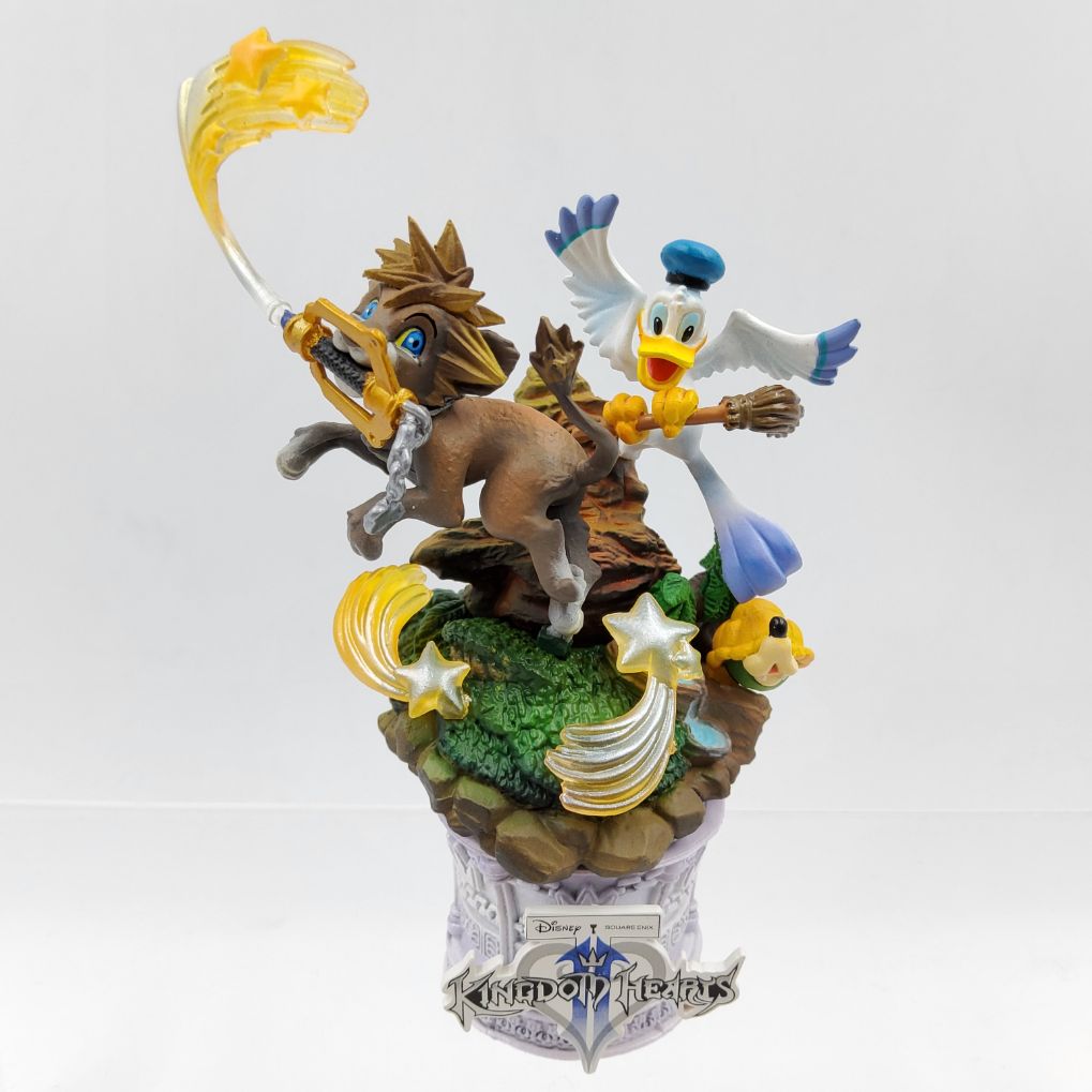 Figurine de Sora, Donald et Dingo du jeu vidéo KH 2 dans leurs formes issues de la Terre des Lions du film Le Roi Lion.