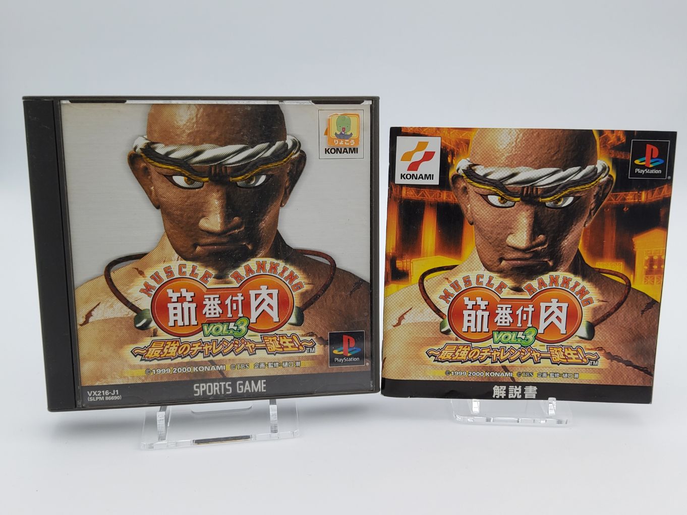 Kinnikubanzuke Vol.3 Saikyouno Challenger Tanjyou! est un jeu video de sport de Konami sur l’émission Kinniku Banzuke, sorti uniquement au Japon sur Playstation 1 en 200. Il fait parti de la série des Muscle Ranking.