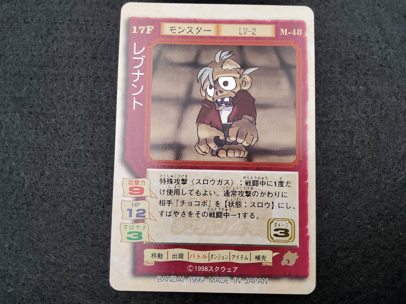 Carte du trading card game « Chocobo’s Gamecard », jeu publié par Bandai uniquement au Japon en 1999 lors de la sortie du jeu video Chocobo’ss Dungeon 2 de Squaresoft.