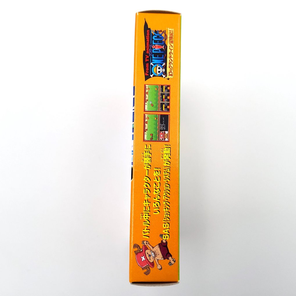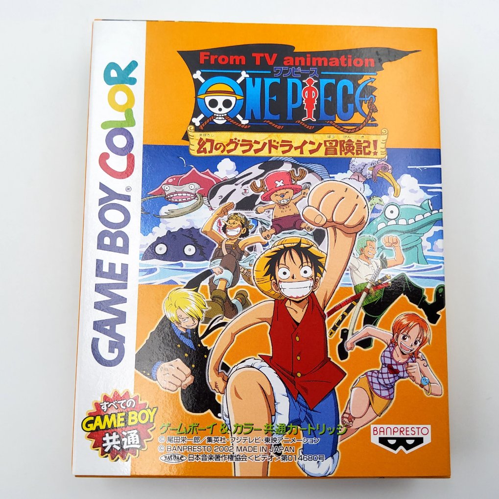 One Piece Maboroshi no Grand Line Boukenki! est un jeu vidéo de rôle adapté de l’anime One Piece. Développé et édité par Bandai uniquement au Japon en 2002 sur Gameboy Color.