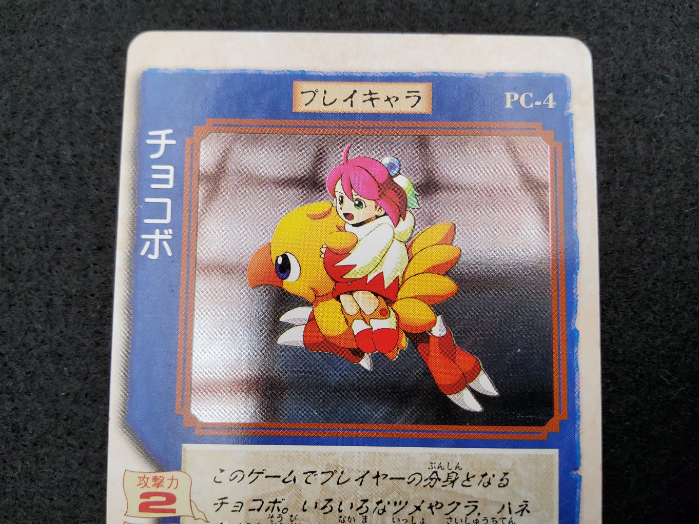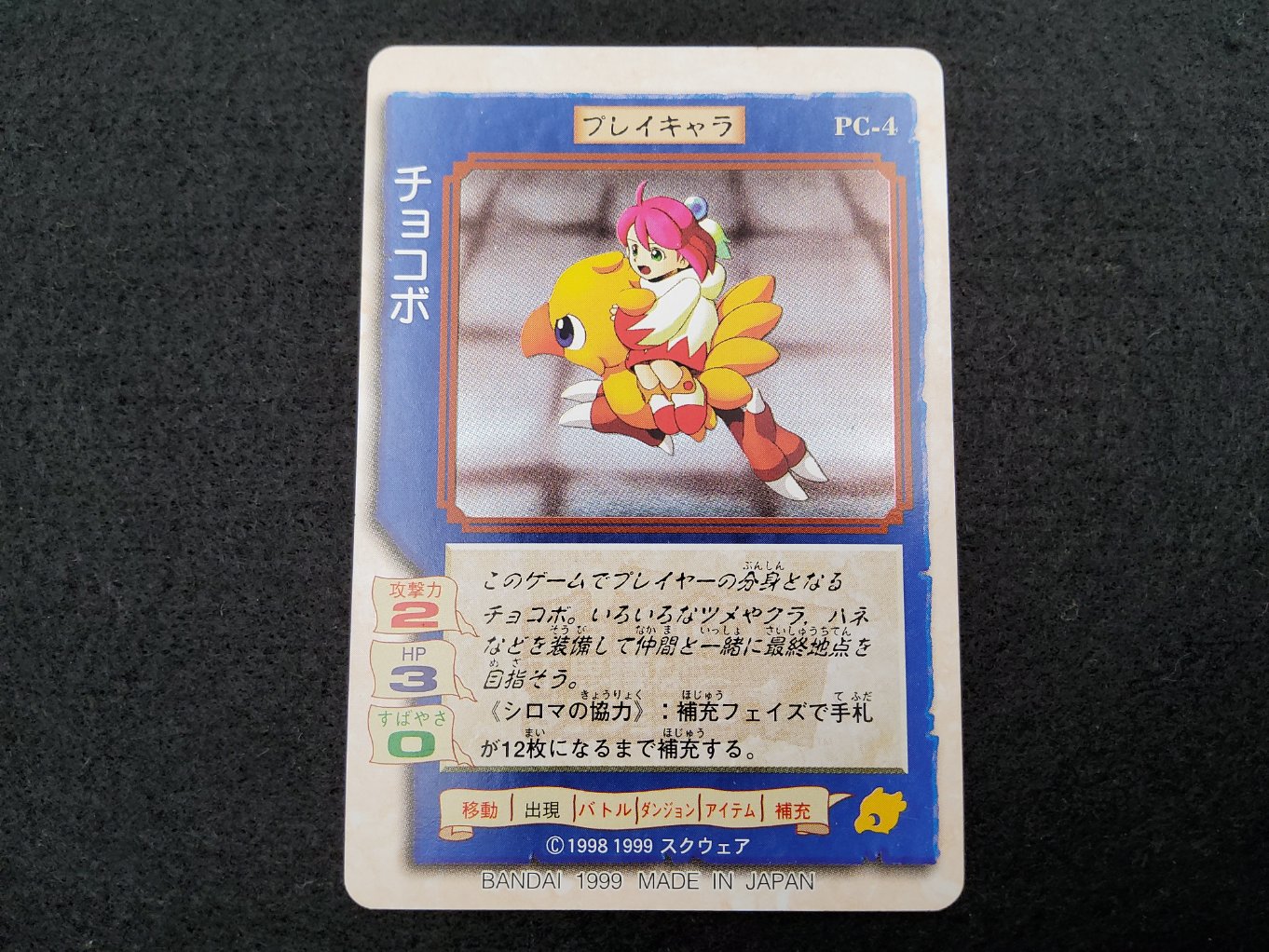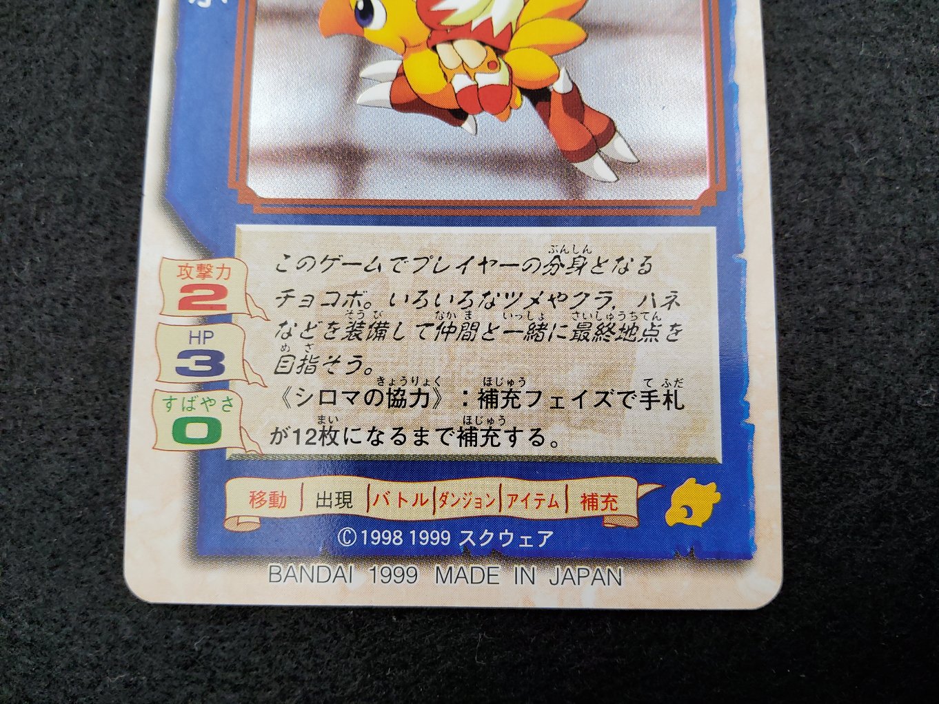 Carte du trading card game « Chocobo’s Gamecard », jeu publié par Bandai uniquement au Japon en 1999 lors de la sortie du jeu video Chocobo’ss Dungeon 2 de Squaresoft.