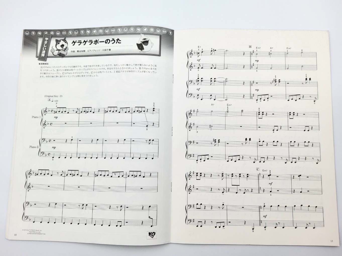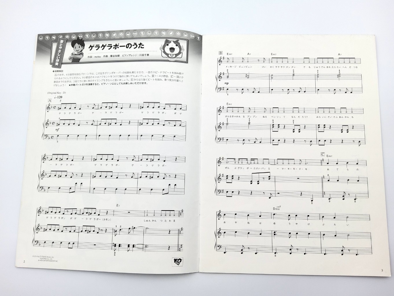 Petit livret contenant 4 partitions pour piano de l’anime Yokai Watch.