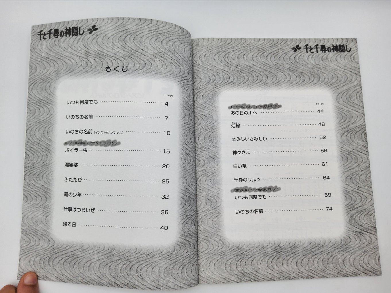Recueil de 17 partitions pour piano du film Le Voyage de Chihiro réalisé par Hayao Miyazaki en 2001 pour le Studio Ghibli.