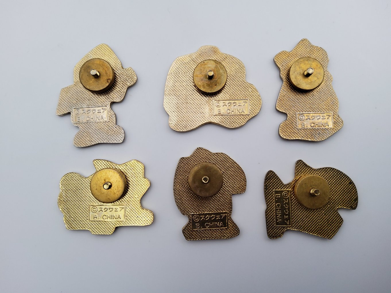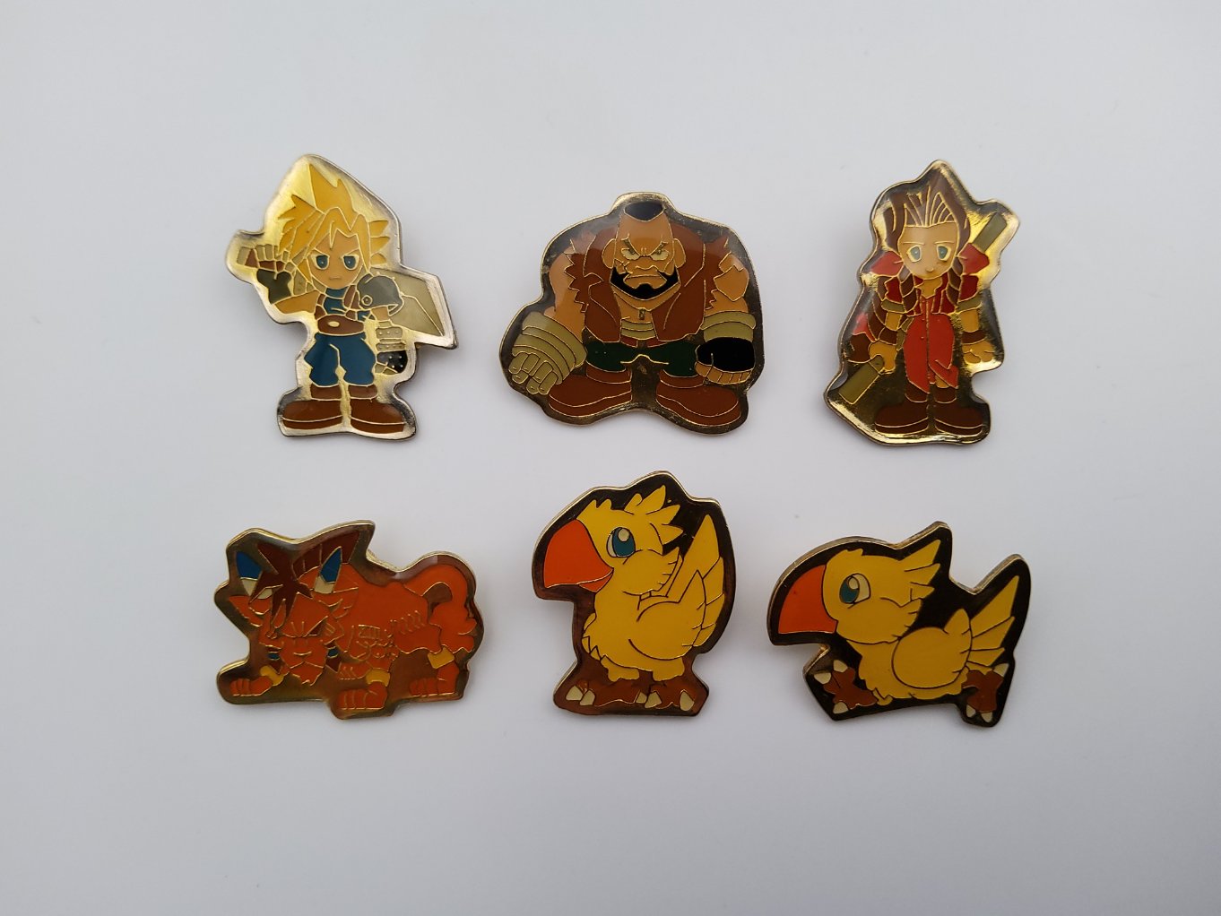 Collection complète des 6 pin’s en métal de Final Fantasy VII fabriqués par Bandai en 1997 pour la sortie du jeu vidéo FF 7.
