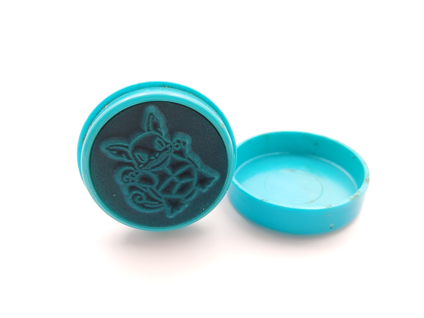 Figurine Pokemon de Salamèche sur un tampon encreur appartenant à la collection Pocket Monsters Character Stamp.