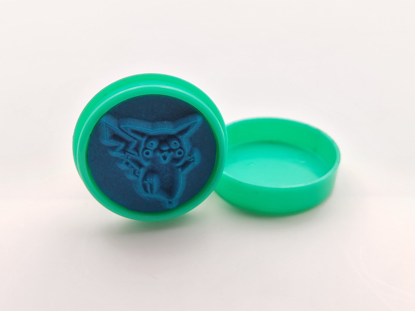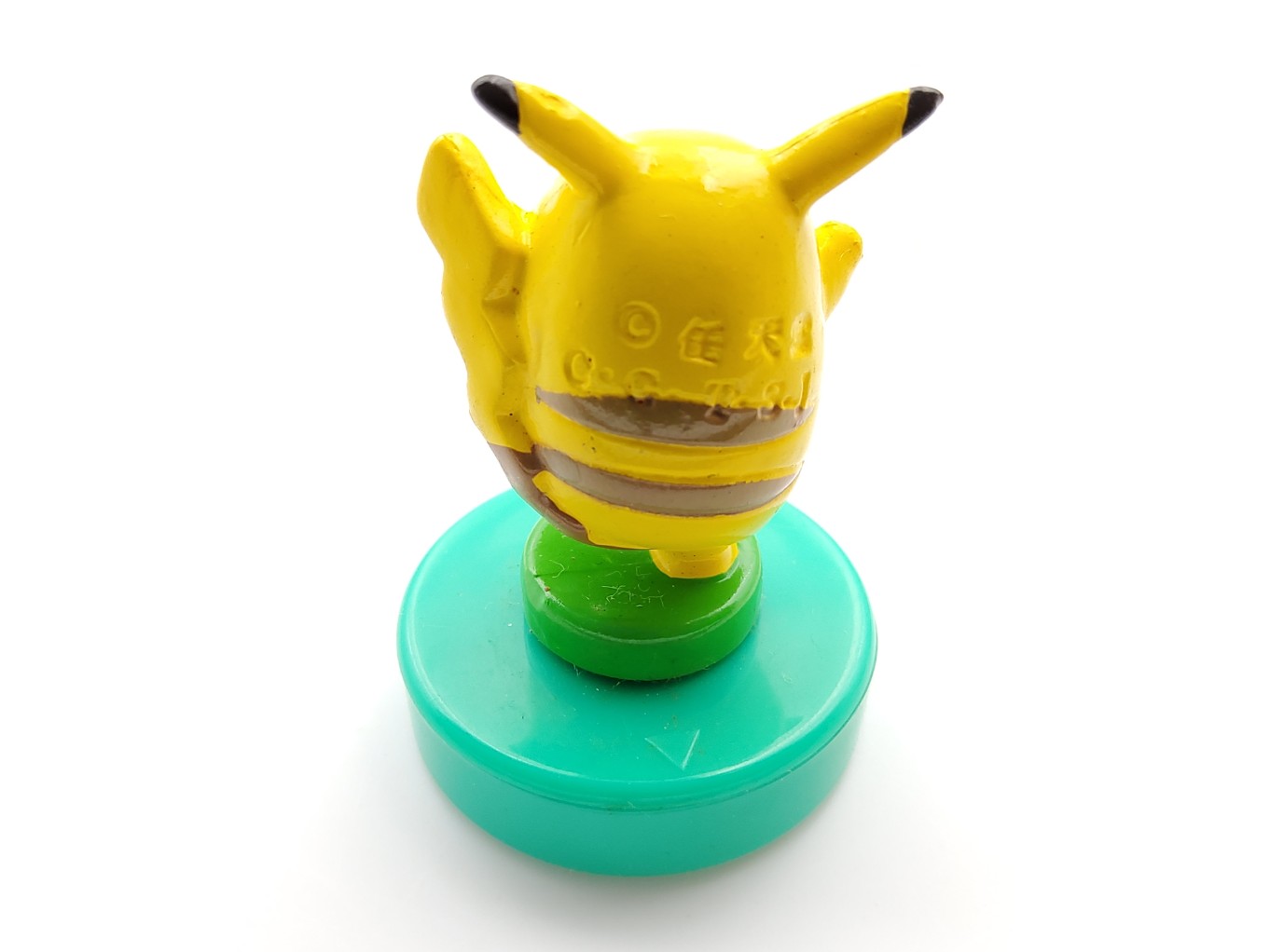 Figurine Pokemon de Pikachu sur un tampon encreur appartenant à la collection Pocket Monsters Character Stamp.