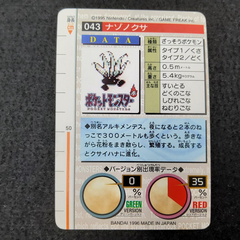 Carte Pokemon officielle de Mystherbe (Vert), appartenant à la collection Pocket Monsters Carddass Trading Cards produite par Bandai en 1996. Sortie uniquement au Japon.