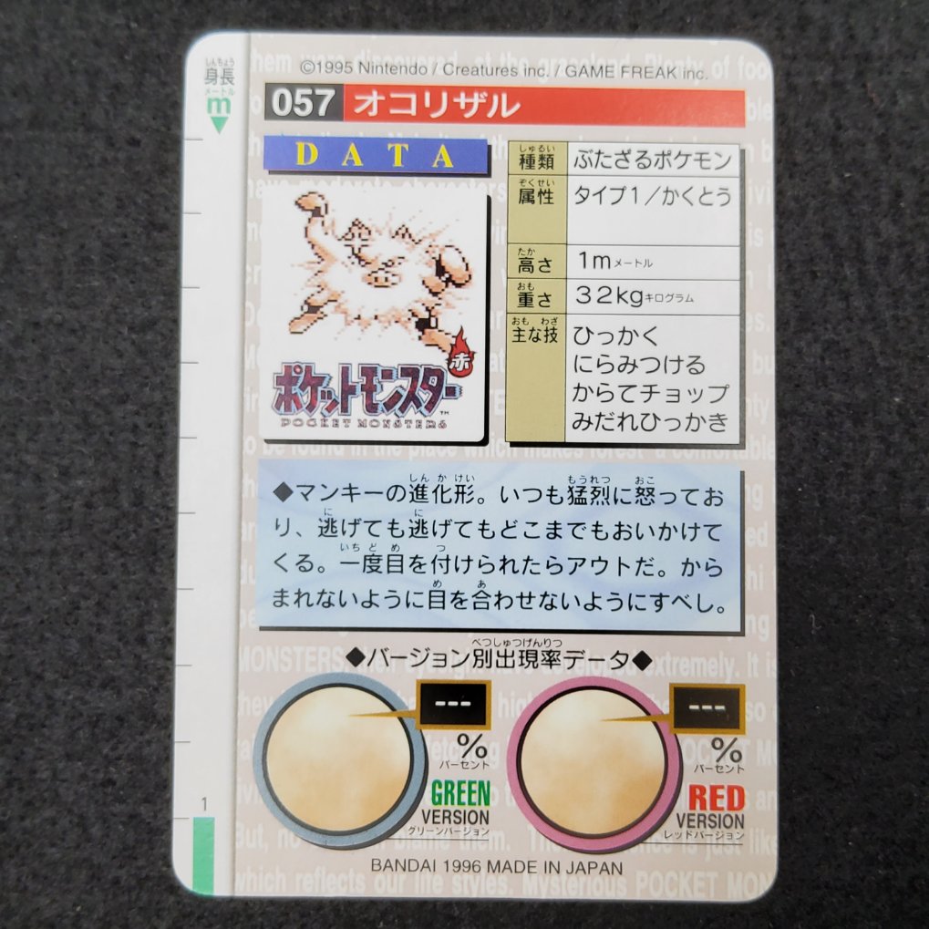 Carte Pokemon officielle de Colossinge (Vert), appartenant à la collection Pocket Monsters Carddass Trading Cards produite par Bandai en 1996. Sortie uniquement au Japon.