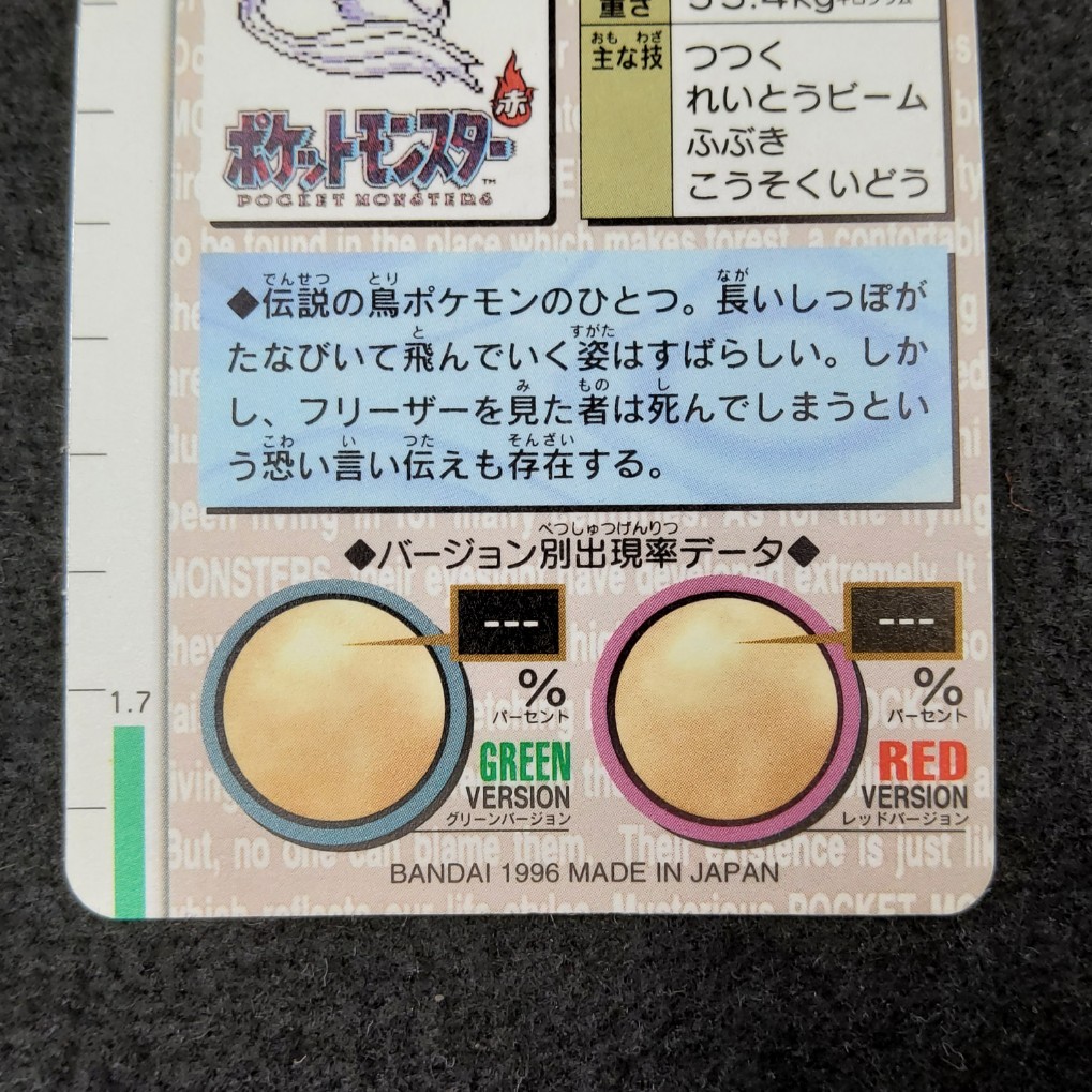 Carte Pokemon Holo officielle d’Artikodin (Vert), appartenant à la collection Pocket Monsters Carddass Trading Cards produites par Bandai en 1996. Sortie uniquement au Japon.