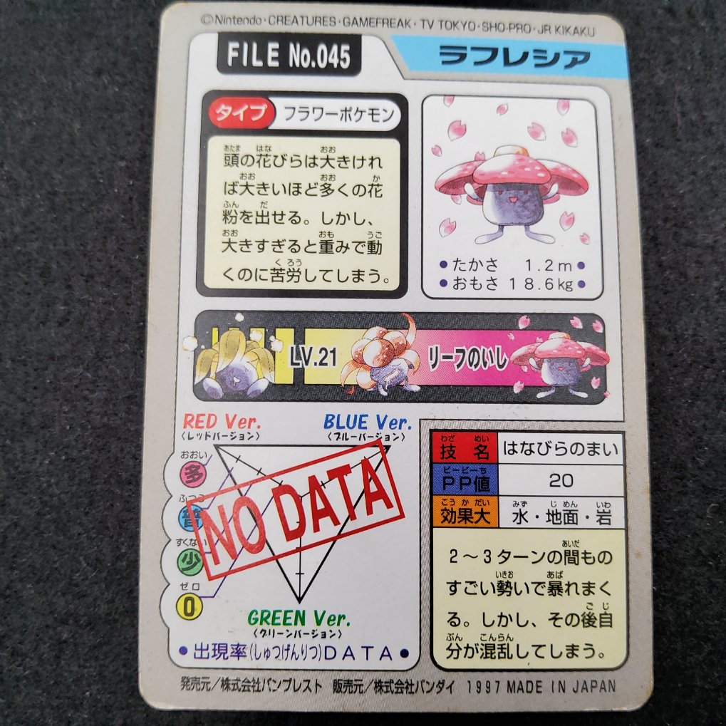 Carte Pokemon officielle de Raflesia, appartenant à la collection Pocket Monsters Carddass Trading Cards produites par Bandai en 1997. Sortie uniquement au Japon.