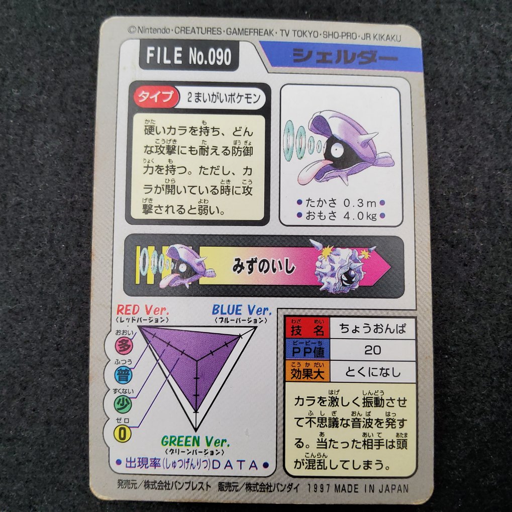Carte Pokemon officielle de Kokiyas , appartenant à la collection Pocket Monsters Carddass Trading Cards produites par Bandai en 1997. Sortie uniquement au Japon.
