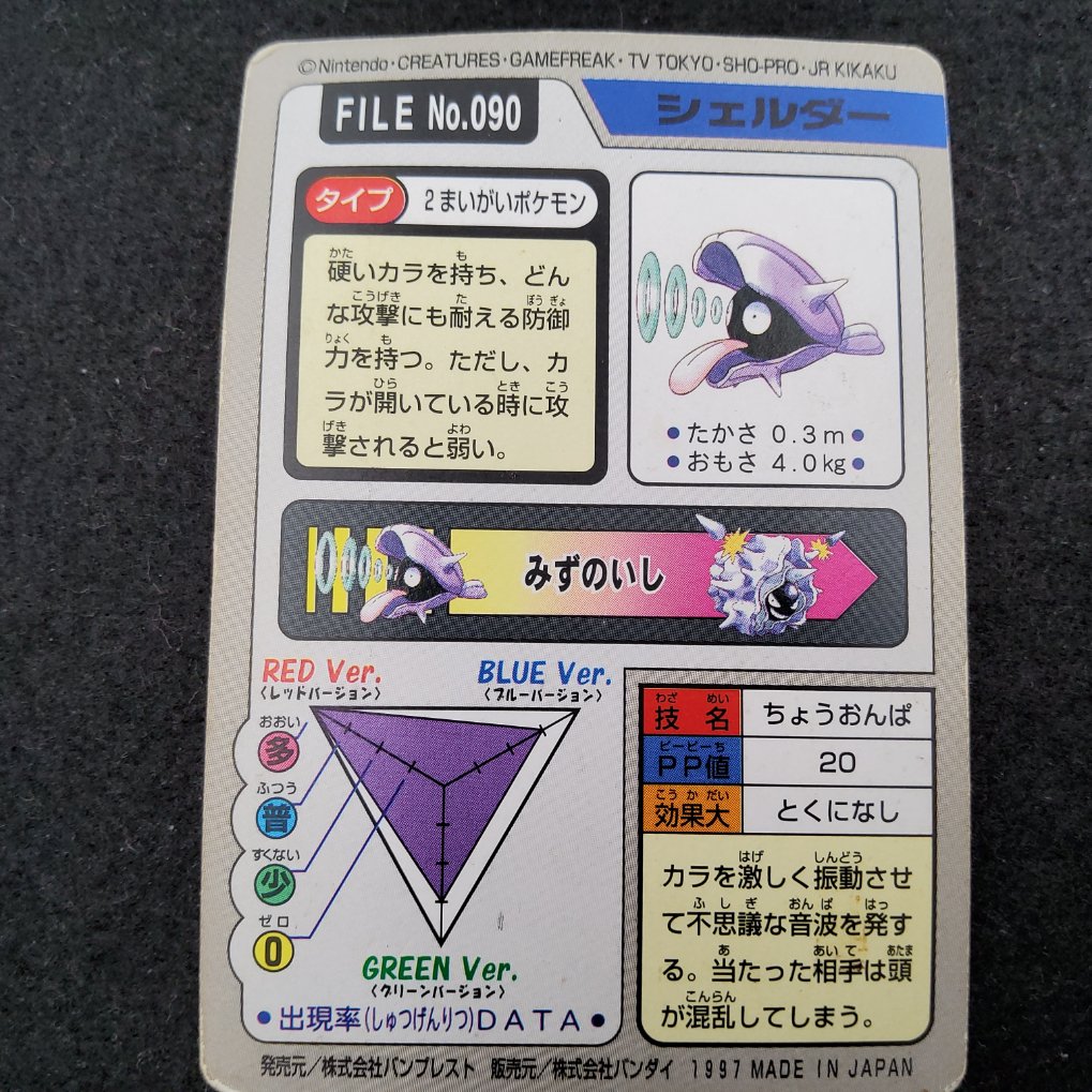 Carte Pokemon officielle de Kokiyas , appartenant à la collection Pocket Monsters Carddass Trading Cards produites par Bandai en 1997. Sortie uniquement au Japon.