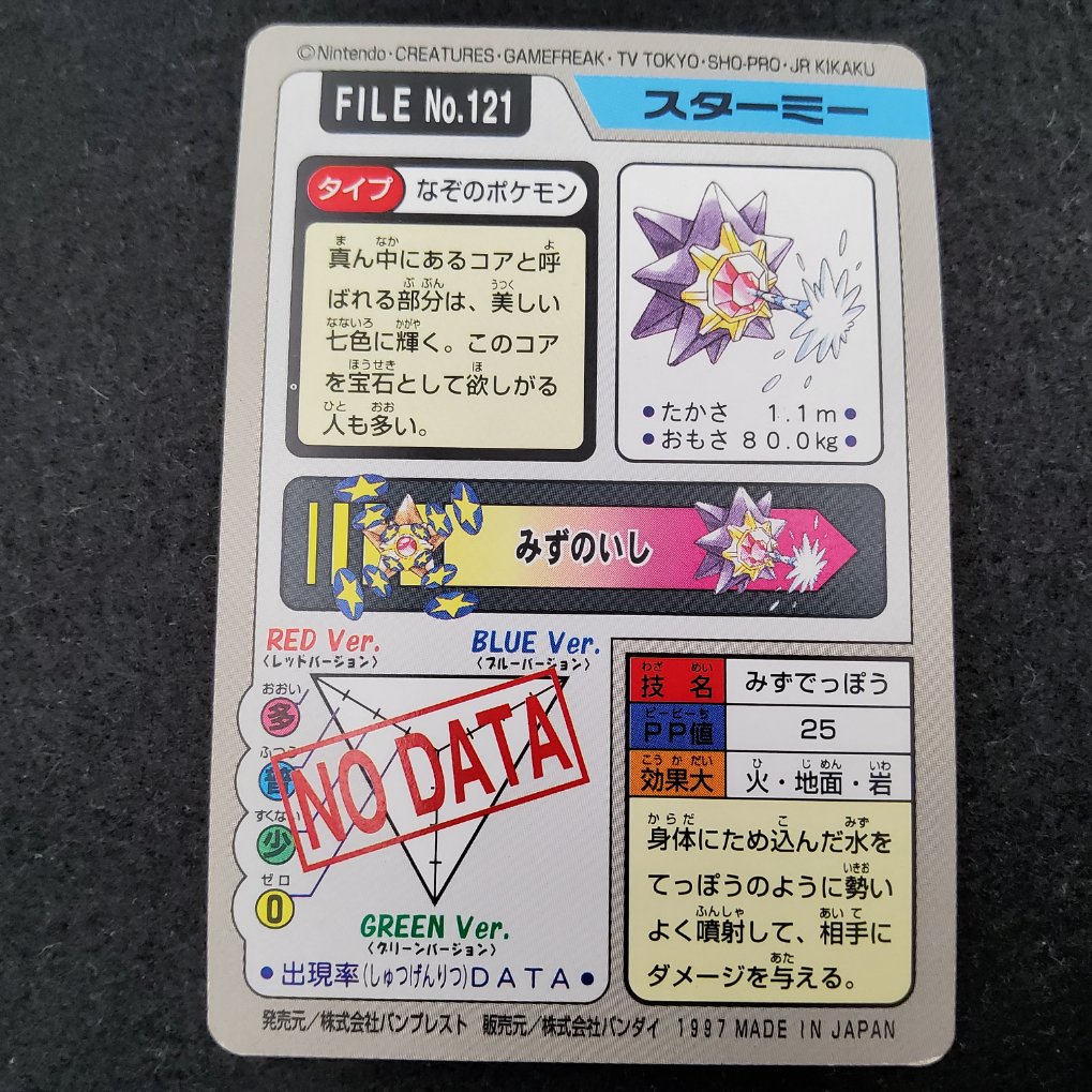 Carte Pokemon officielle de Staross, appartenant à la collection Pocket Monsters Carddass Trading Cards produites par Bandai en 1997. Sortie uniquement au Japon.