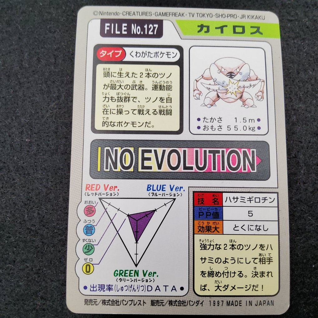 Carte Pokemon officielle de Scarabrute, appartenant à la collection Pocket Monsters Carddass Trading Cards produites par Bandai en 1997. Sortie uniquement au Japon.
