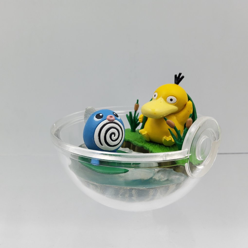 Figurines Pokemon de Psykokwak et de Ptitard produites par Re-Ment appartenant à l’édition Terrarium Collection 2.