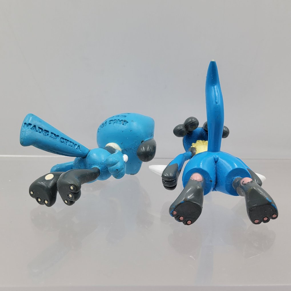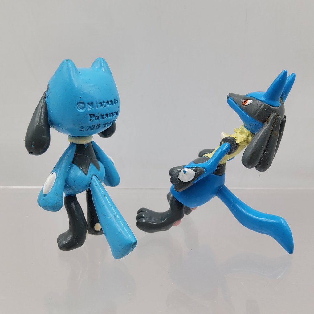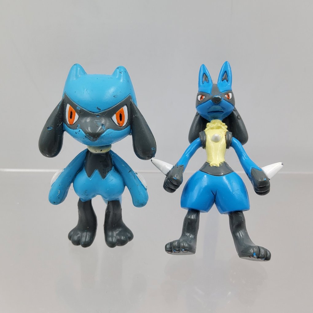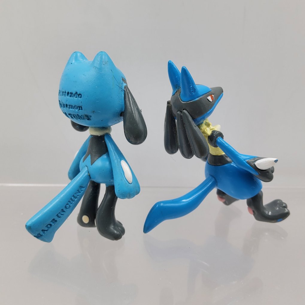 Figurines Pokemon Tomy de Riolu et Lucario de la collection Moncolle.