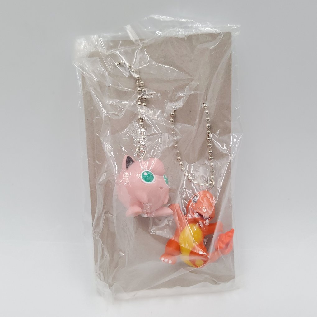 Figurines officielles de Salamèche et de Rondouodu avec une chaîne en porte-clé, appartenant à la collection Pokemon Holder.
