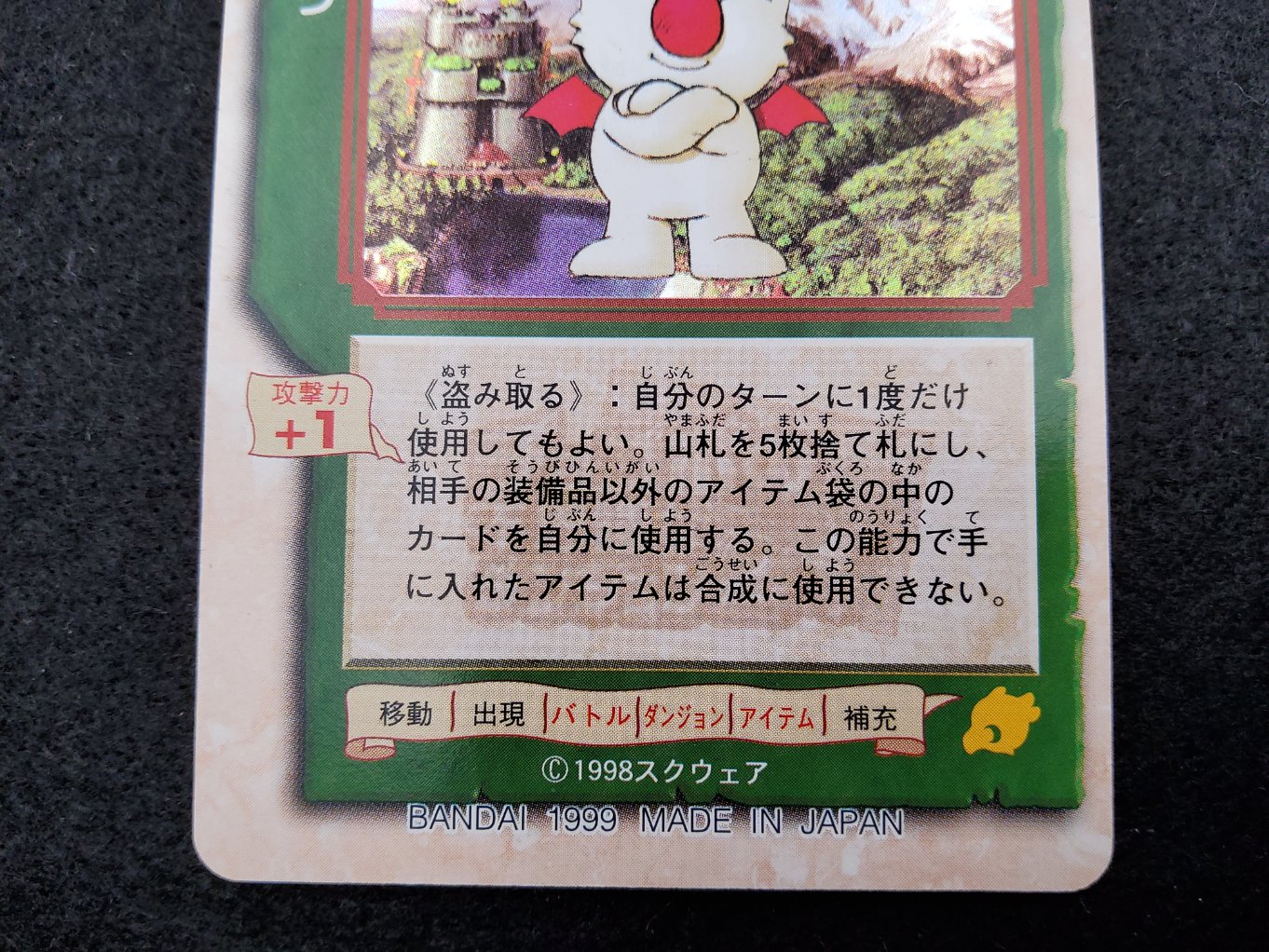 Carte du trading card game « Chocobo’s Gamecard », jeu publié par Bandai uniquement au Japon en 1999 lors de la sortie du jeu video Chocobo’ss Dungeon 2 de Squaresoft.