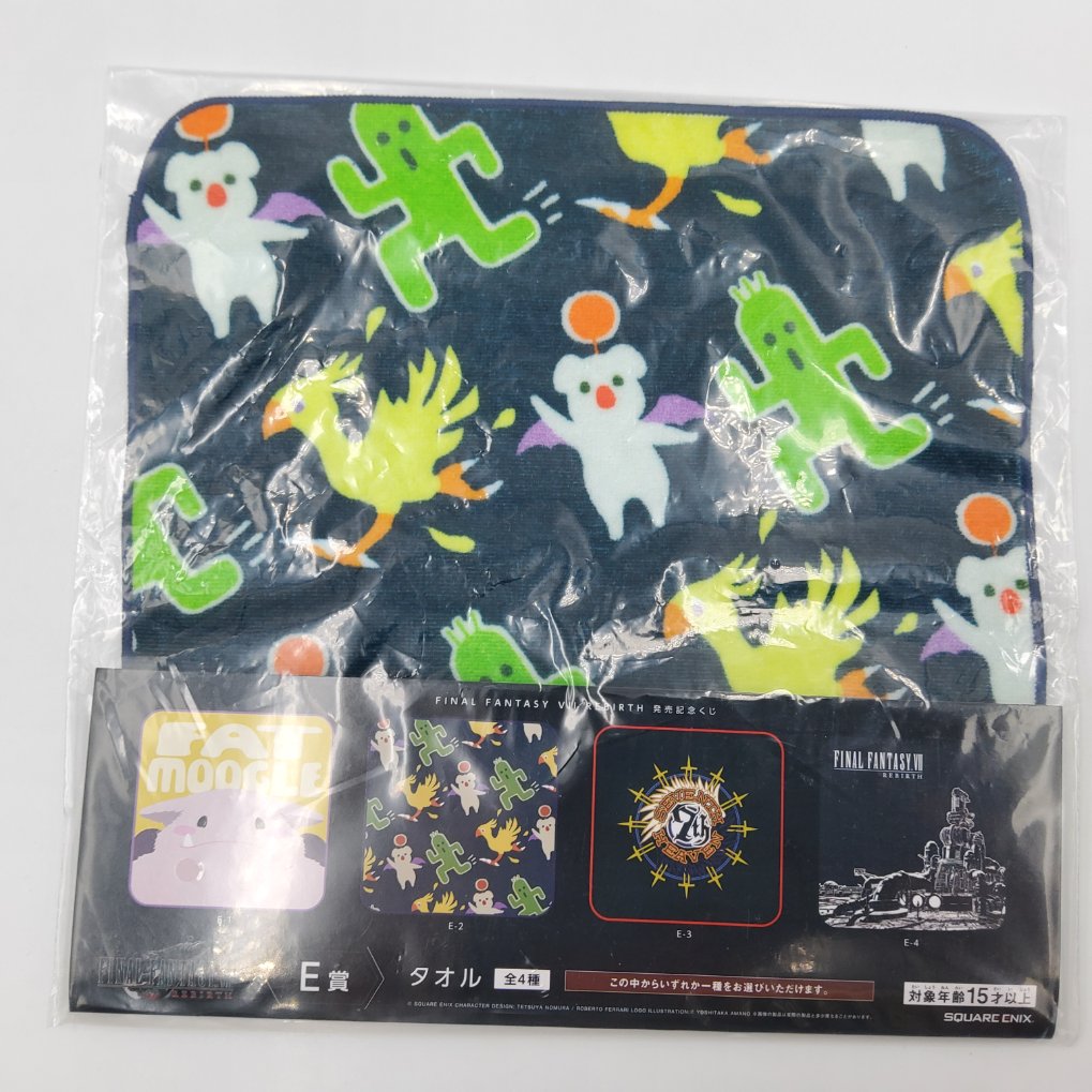Petite serviette en coton motif « Chocobo & Mog & Pampa » du jeu vidéo Final Fantasy 7 Rebirth, appartenant à la collection Final Fantasy VII Rebirth Hatsubai Kinen Kuj.