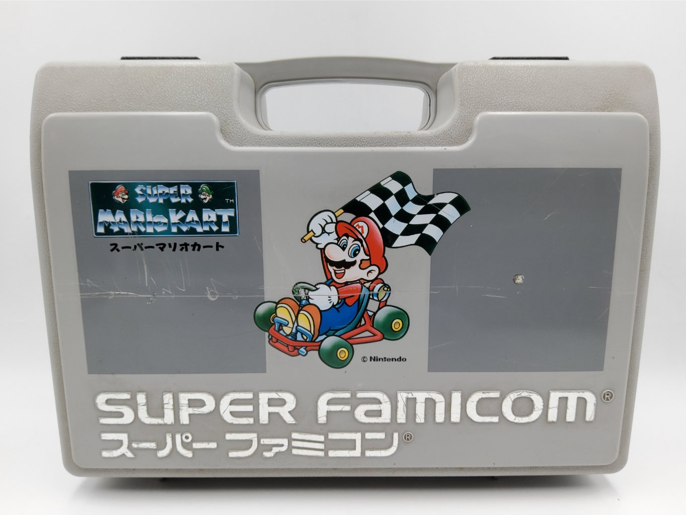 Valise de transport pour des jeux Super Nintendo / Famicom aux couleurs de Super Mario Kart, produite par Nintendo et sortie uniquement au Japon.